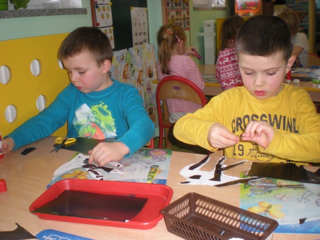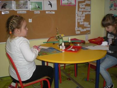 20 marca 2017 roku w grupie Biedronki odbyło się zajęcie otwarte z udziałem rodziców. Tematem zajęcia było: „Powroty ptaków”. W czasie zajęcia dzieci poznały ptaki, które przylatują do nas z Afryki (szpak, bocian, jaskółka, skowronek). Doskonale poradziły sobie w wyszukiwaniu cech wspólnych oraz różnic między tymi ptakami. Nie zabrakło też zabaw ruchowych. Na koniec dzieci wykonały za pomocą wybranej przez siebie techniki plastycznej „Jaskółkę” (wydzieranka, wycinanie różnych kształtów i przyklejanie na sylwetę ptaka). Dzieci sprawnie posługiwały się nożyczkami zachowując zasady bezpieczeństwa wobec siebie i rówieśników. Dziękujemy rodzicom za czynny udział w zajęciu.