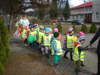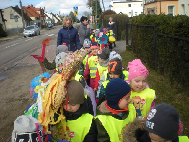 Tymi słowami dzieci z naszego przedszkola żegnały zimę. Wiosna to jedna z najpiękniejszych pór roku na którą wszyscy od dłuższego czasu czekamy. Przedszkolaki tego słonecznego dnia przeszły ulicami Kołczygłów, aby przepędzić zimę i szukać wiosny. Baczni obserwatorzy zauważyli: pierwsze bazie, krokusy, przebiśniegi oraz delikatne, zielone pączki na krzewach. Można śmiało powiedzieć, że wiosna w pełni zagościła w naszej gminie.