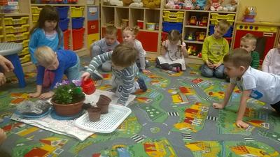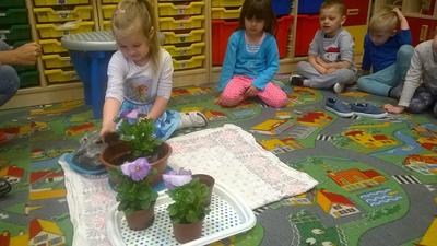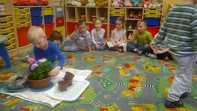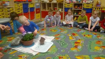 Wczoraj odwiedziliśmy jedną z największych miejscowych ciepłowni, aby dowiedzieć się, jak można ekologicznie ogrzewać budynki. Tata Kuby M.- Pan Olek pokazał dzieciom piec i eko- opał, KRASNALE miały zadanie domowe dla swoich rodziców. Dzisiaj posadziliśmy kwiaty- prazent imieninowy dla Ziemi oraz przygotowaliśmy plakaty. Na zakończenie cyklu zajęć dzieci wykonają prace plastyczne na konkurs pod hasłem; ODDYCHAM CZYSTYM POWIETRZEM RAZEM Z DINUSIEM. Patronem programu jest SANEPID.