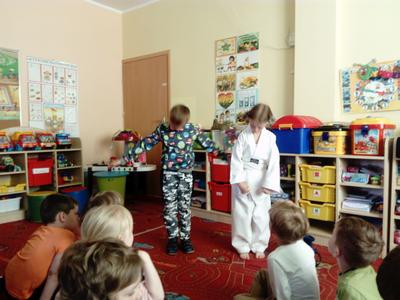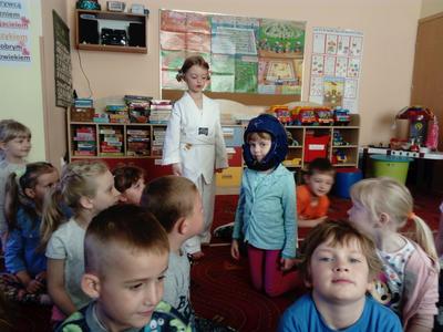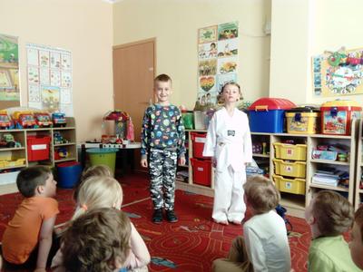 W tym tygodniu Misiaki omawiają i ćwiczą najróżniejsze dyscypliny sportowe - od akrobacji i gimnastyki, po rekreacyjny golf, czy sport tak egzotyczny, jak sztuka walki - Taekwondo. Dziś w świat narodowego sportu Korei wprowadziła nas Lila, która ćwiczy Taekwondo od 3 roku życia w kołczygłowskim UKS "Tygrys". Dziewczynka przebrana w odpowiedni strój zaprezentowała wszystkim fragmenty układu. Odpowiedziała również na wszystkie nasze pytania. Dziękujemy Lilu za ciekawą i pouczającą lekcję!