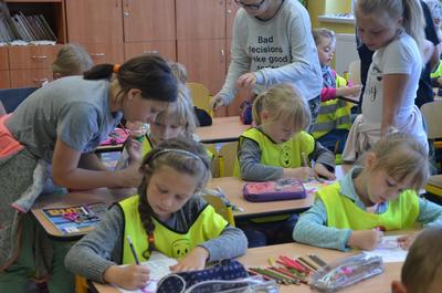 Dla sporej części naszych starszaków ten rok szkolny jest ich ostatnim rokiem w przedszkolu. Przed nimi nowe wyzwanie – nauka w szkole. Aby lepiej przygotować dzieci do startu w tę szkolną rzeczywistość, 6 czerwca odbyliśmy kolejną wycieczkę do Zespołu Szkół w Kołczygłowach. Dzieci poznały wychowawczynie klas trzecich: Panią Małgosię i Panią Elę, zwiedziły szkołę, sekretariat i przywitały się z Panią Dyrektor Sylwią Sexton. Za wspaniałe przyjęcie bardzo dziękujemy. Zarówno szkoła jak i zajęcie ze starszymi kolegami wywarły na „Misiakach” ogromne wrażenia.