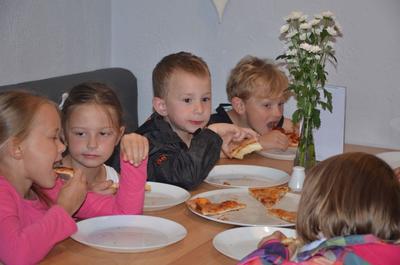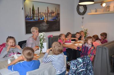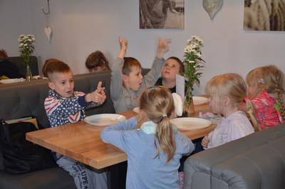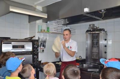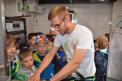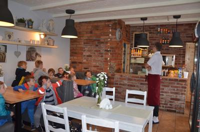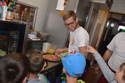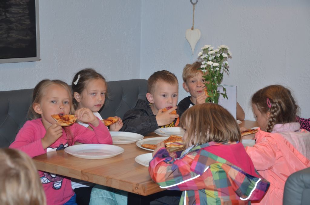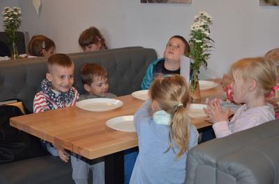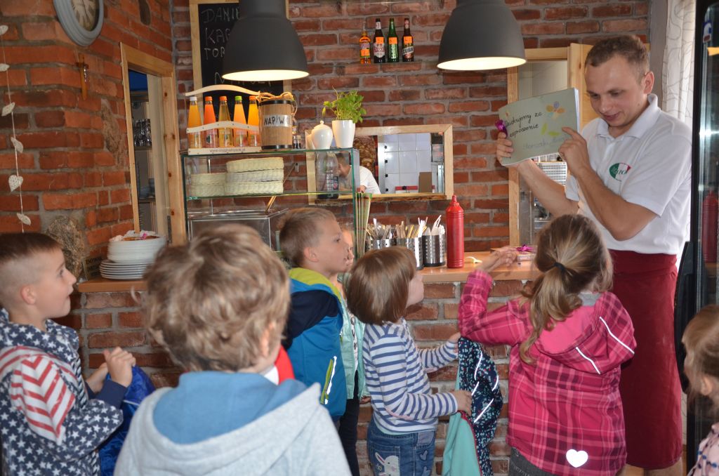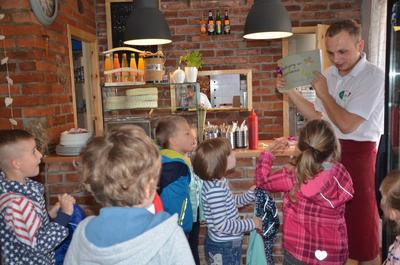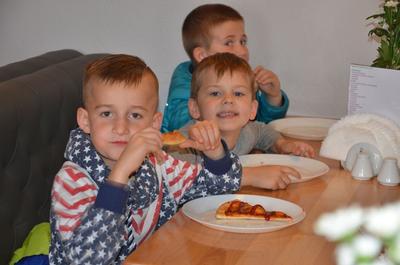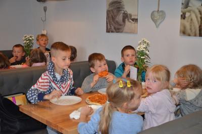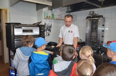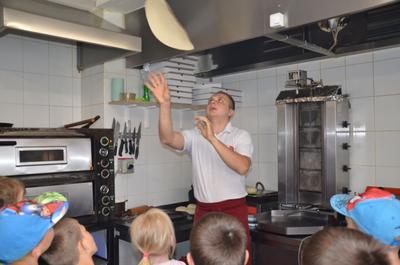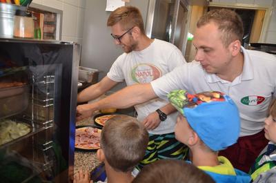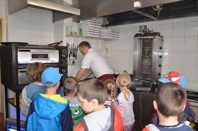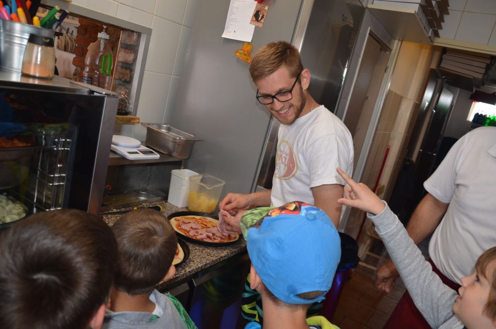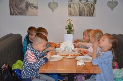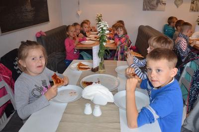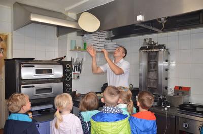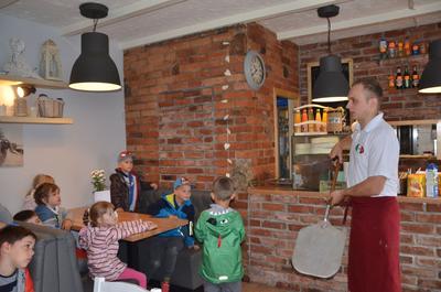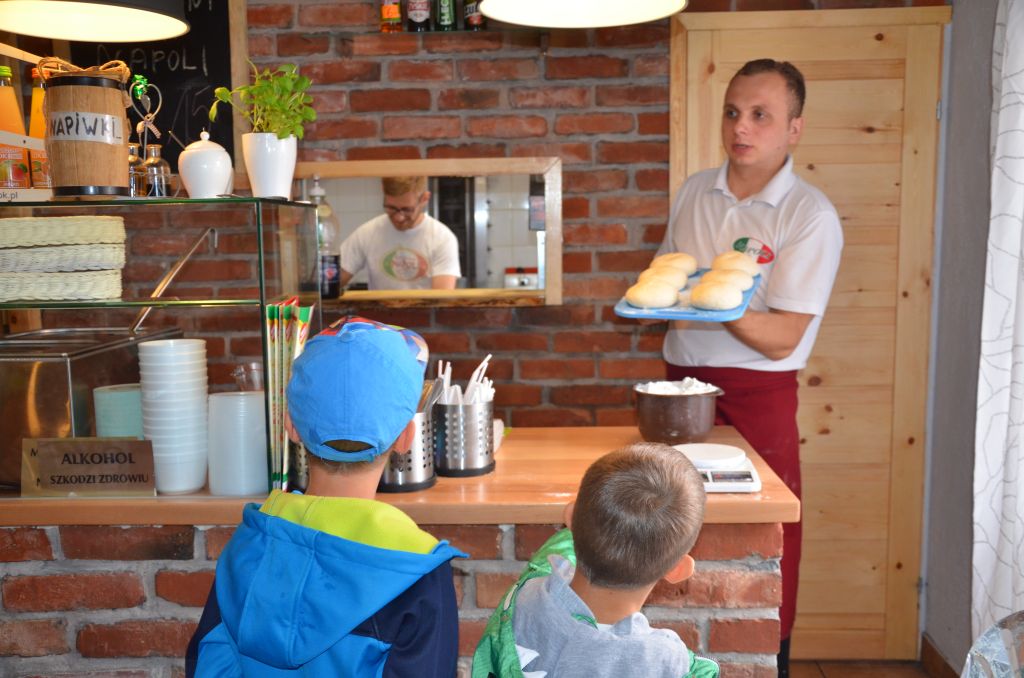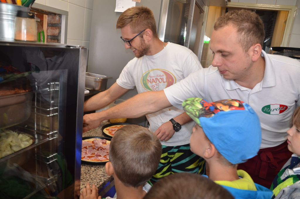 Kilka dni temu otrzymaliśmy wspaniałe zaproszenie od Pana Jarka – właściciela pizzerii „Napoli” znajdującej się w Kołczygłowach. Dziś Misiaki wybrały się na wycieczkę do pizzerii. Dzieci zapoznały się z pracą w restauracji oraz zobaczyły jak wygląda proces robienia pizzy od wyrobienia ciasta po włożenie przygotowanej pizzy do pieca. Największe wrażenie na wszystkich zrobił moment rozciągania w powietrzu ciasta do pizzy. Każdy przedszkolak uważnie obserwował proces nakładania dodatków na pizze. I na koniec wyprawy nadeszła najważniejsza chwila – degustacja wykonanych pizz. Na sali restauracyjnej zapanowała cisza, przerywana tylko odkrawaniem kolejnych smacznych trójkącików Margherity. Dziękujemy Panom Jarkowi i Arkowi za wspaniałą lekcję pokazową i zdradzenie tajników przepisów na pizzę