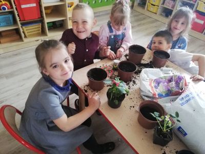Przyroda to nieodłączny element naszego życia, więc dbanie o nią jest naszym obowiązkiem. Dlatego od najmłodszych lat uczymy dzieci zasad recyklingu oraz kształtujemy w nich postawę ekologiczną. Z okazji Dnia Ziemi, 22 kwietnia u Misiaków odbyły się zajęcia, które miały na celu zrozumienie przez dzieci znaczenia ochrony przyrody. Przedszkolaki dowiedziały się o niebezpieczeństwach grożących środowisku przyrodniczemu ze strony człowieka. Przedszkolaki w praktyczny sposób mogły wykorzystać zdobyte informacje na temat segregacji śmieci wrzucając odpady do odpowiednich pojemników. Ponadto, gdy tylko temperatura i słońce przypomniały sobie o nadejściu wiosny dzieci zadbały o najbliższe otoczenie i zasadziły wiosenne kwiaty i truskawki. Trzymajcie kciuki za bogate plony!