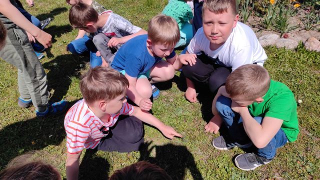 W piękny majowy dzień grupa " Jeżyki" wybrała się na spacer na łąkę, aby poobserwować przyrodę. Wyprawa ta, miała na celu kształtowanie umiejętności obserwacji roślin i owadów, a także rozbudzanie zainteresowań przyrodą i otoczeniem. Dzieci ciekawe otaczającego je świata chętnie brały udział w poszukiwaniu roślin i zwierząt żyjących na łące. Po powrocie wykonały piękne prace plastyczne biedronki i motyle.
