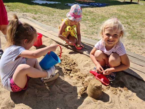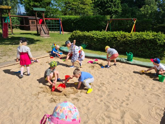 Dzisiaj 11 czerwca 2021 r. w grupie Biedronek odbyło się zajęcie otwarte dla rodziców. Zajęcia otwarte dają bowiem rodzicowi niepowtarzalną okazję zobaczenia, jak jego dziecko odnajduje się w grupie przedszkolnej – jakie ma relacje z rówieśnikami, a także z nauczycielem, czy potrafi skupić się podczas zajęć, czy zapamiętuje i wykonuje polecenia oraz jak prezentuje się poziom jego umiejętności na tle umiejętności innych dzieci. Pogoda dopisała, ponieważ zajęcie zgodnie z tematem dnia ,,Piaskownica” i tematem zajęć ,,Słuchanie opowiadania pt. ,,Wiaderko” odbyło się na placu zabaw. Zajęcia dostarczyły dzieciom wiele radości i zadowolenia, co pokazują zdjęcia. Z pozdrowieniami Pani Magda