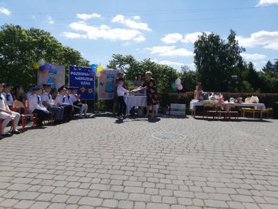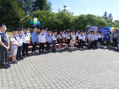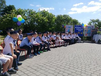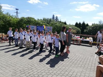 16 czerwca odbyło się w naszym przedszkolu uroczyste zakończenie roku szkolnego i pożegnanie 6-latków. Dzieci przedstawiły bogaty program artystyczny, w którym zademonstrowały swoje umiejętności zdobyte w ciągu całego roku, między innymi: recytowały wiersze, śpiewały piosenki oraz zatańczyły poloneza. Grupa "Misiaki" tradycyjnie pożegnała starszych kolegów i koleżanki wierszem. Pani Dyrektor wręczyła dzieciom pamiątkowe dyplomy i książki. Dzieci otrzymały również miłe upominki.