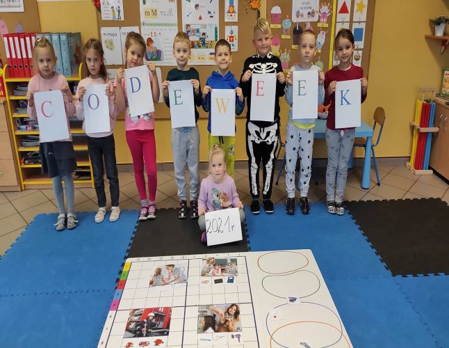 Po raz kolejny nasze przedszkole brało udział w Europejskim Tygodniu Kodowania. Celem akcji jest rozwijanie logicznego myślenia, rozbudzanie kreatywności dzieci już od najmłodszych lat. Do zabawy zostały wykorzystane kolorowe kubeczki, karty do kodowania, patyczki, obrazki, maty oraz żywe okazy przyrodnicze. Dzieci z zaangażowaniem, ciekawością i kreatywnością wykonywały powierzone im zadania. Zapraszamy do galerii.
