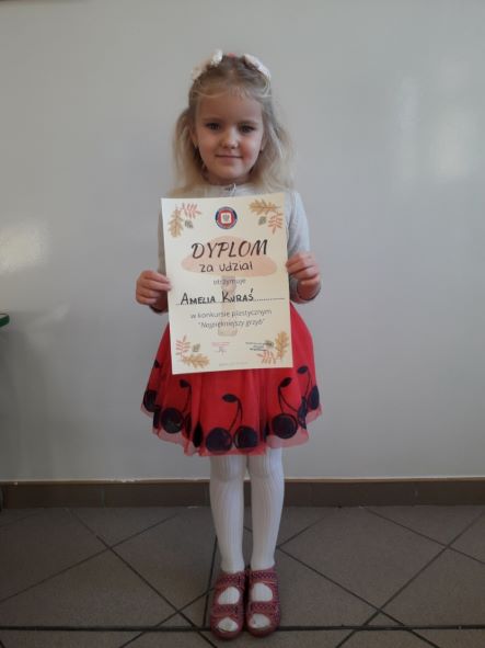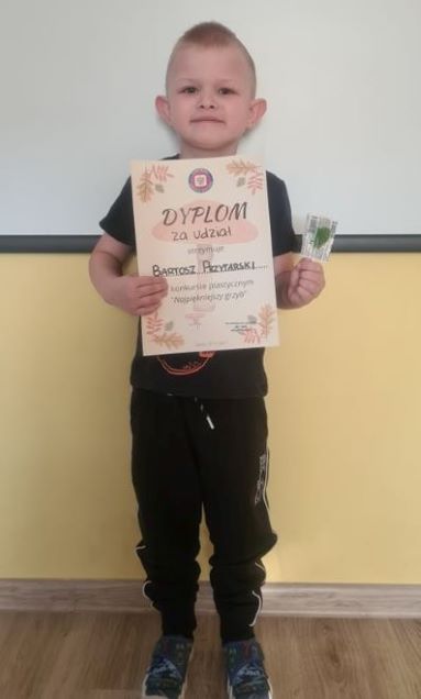 Dzieci z grupy "Jeżyki", ,,Żabki” i ,,Misiaki” wzięły udział w konkursie plastycznym pt. ,,Najpiękniejszy grzyb" zorganizowany przez Państwowy Powiatowy Inspektorat Sanitarny w Bytowie. Drugie miejsce zdobył Szymon.K. Nagrodę za udział otrzymali Bartosz P. i Amelka K.