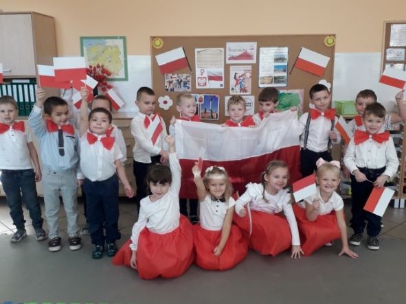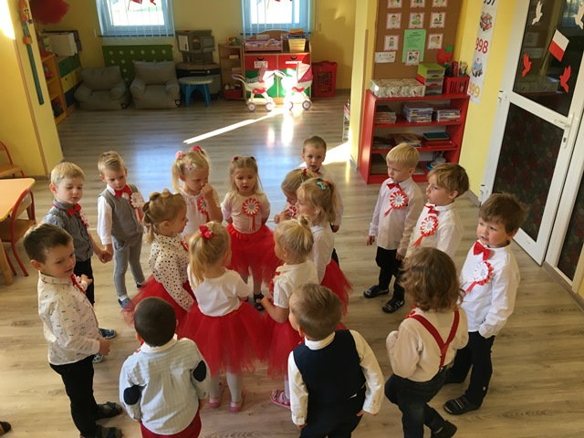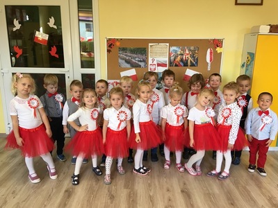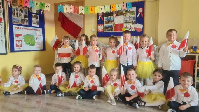 Dziś w naszym przedszkolu świętowaliśmy Narodowe Święto Niepodległości. To wyjątkowy czas dla każdej Polki i każdego Polaka. 10 listopada odbyła się uroczystość upamiętniająca 103 rocznicę odzyskania niepodległości przez Polskę. Z tej okazji dzieci ze wszystkich grup przygotowały krótkie części artystyczne. Ze względu na pandemię każda grupa świętowała w swojej sali.
