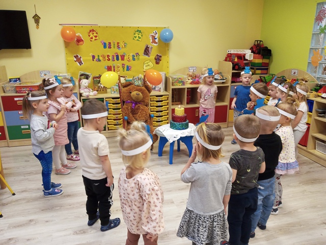 25 listopada w naszym przedszkolu, jak co roku obchodziliśmy „Dzień Pluszowego Misia”. Mimo coraz nowocześniejszych i atrakcyjniejszych zabawek moda na misie nie przemija. Nasze przedszkolaki brały udział w zabawach ruchowych, konkursach, rozwiązywały zagadki. Oczywiście świętowały urodziny Misia. Nie obyło się bez smakołyków – ciasteczek z miodem. Dzień ten był pełen wrażeń i niespodzianek.