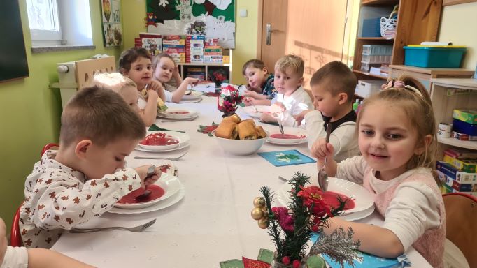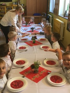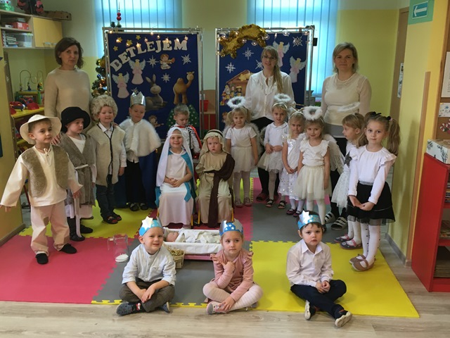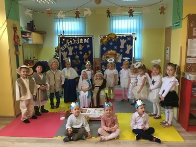 Zbliżają się święta Bożego Narodzenia- czas pełen miłości, ciepła, spotkań rodzinnych. W naszym przedszkolu również zrobiło sie bardzo świątecznie. Każda grupa świętowała dzisiejszą Wigilię w swojej sali. Dzieci z grupy BIEDRONKI przygotowały zaś świąteczną niespodziankę dla swoich przedszkolnych kolegów- JASEŁKA. Pomimo nieobecności kilku "małych aktorów" z powodu choroby, przedszkolaki wystąpiły przepięknie. Brawo!