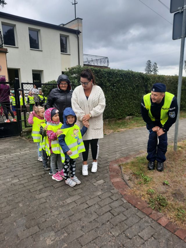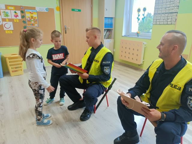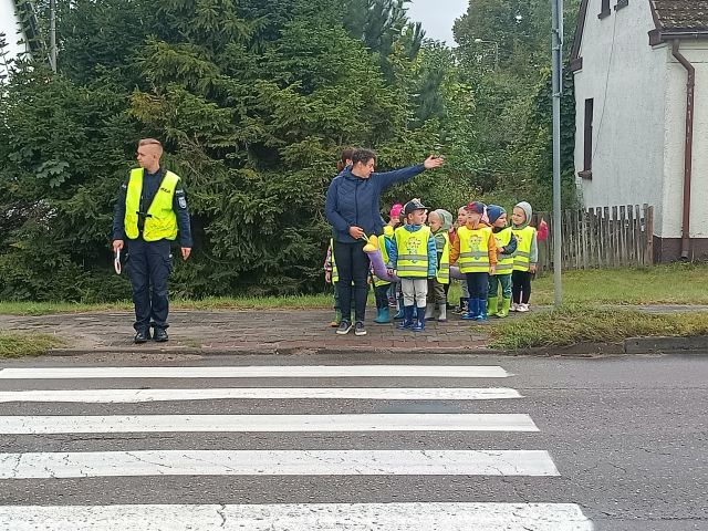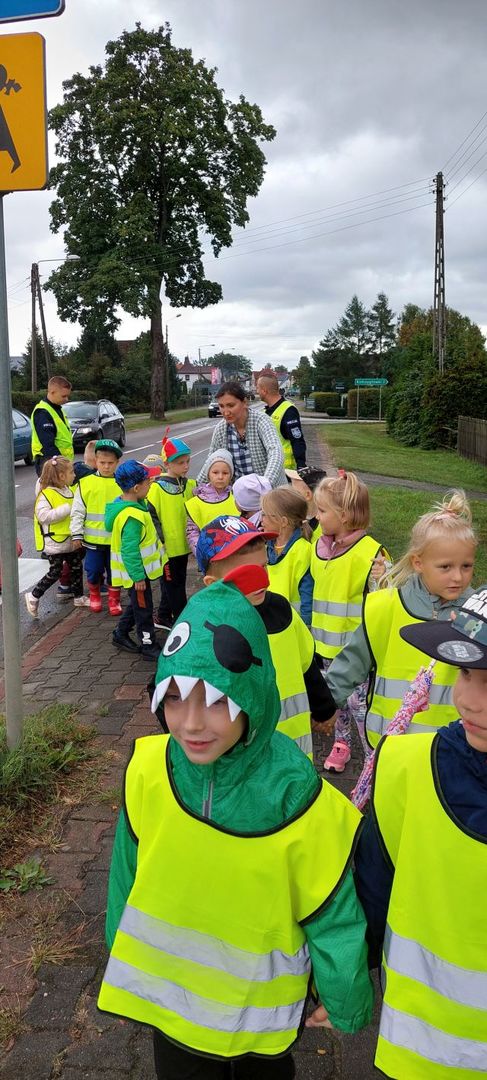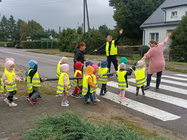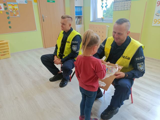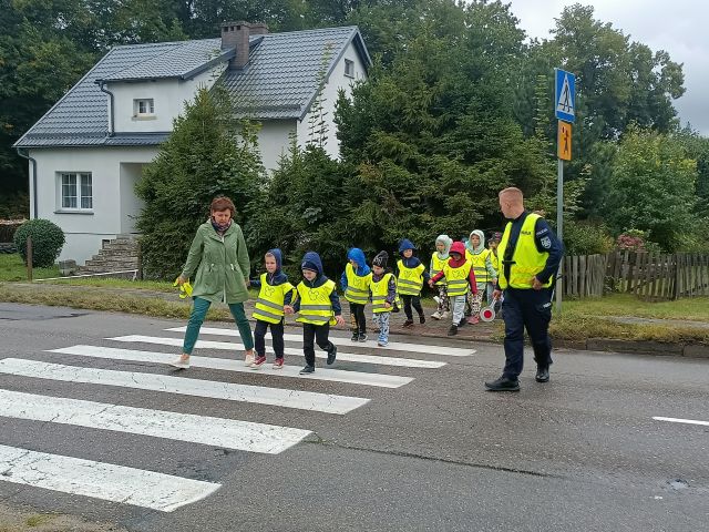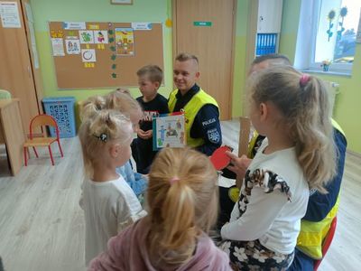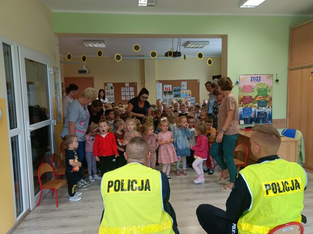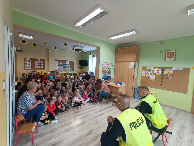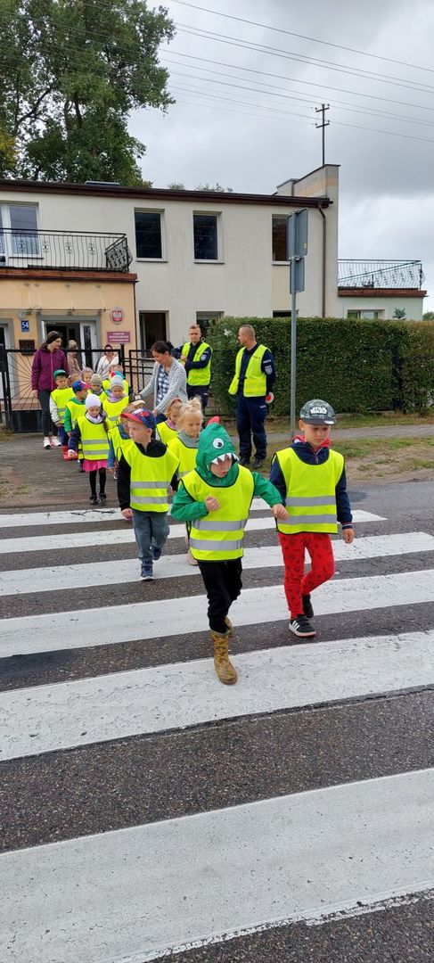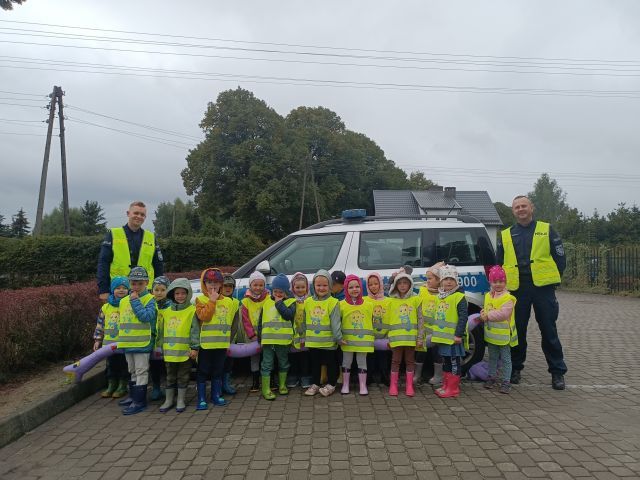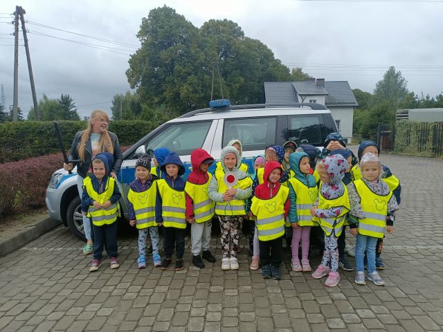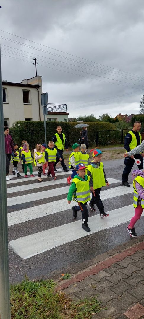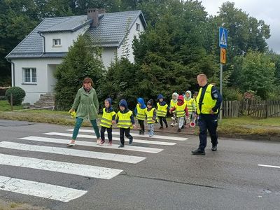 Dziś w przedszkolu gościliśmy policjantów, którzy omówili z dziećmi, jak należy bezpiecznie poruszać się chodnikiem, przechodzić przez jezdnię oraz jechać samochodem. Wszyscy z ogromnym zainteresowaniem wysłuchali słów policjantów, dzieci wykazały się dużą wiedzą. Najlepszą nauką jest praktyka, więc każda grupa pokazała, jak prawidłowo należy przejść przez pasy. Zapraszamy do galerii.