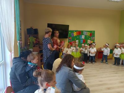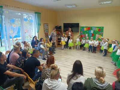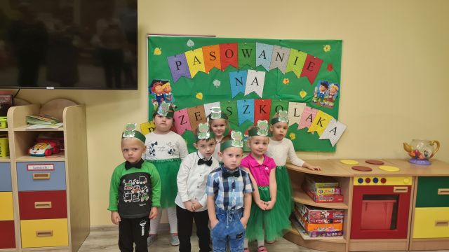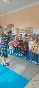 Dzisiejszy dzień tj. 18 października pozostanie na długo w pamięci dzieci nowoprzybyłych do Gminnego Przedszkola w Kołczygłowach. Właśnie tego dnia odbyło się w naszej placówce ,,Pasowanie na Przedszkolaka”. W tej ważnej uroczystości brali udział rodzice grupy Krasnali, Żabek, Biedronek, Misiaków, Jeżyków oraz Pani Dyrektor. Bo w tym roku szkolnym do każdej z grup przybyły nowe dzieci. Uroczystość rozpoczęła się powitaniem gości. Dzieci zaprezentowały swoje umiejętności. Przyrzekały zgodnie się bawić, przychodzić do przedszkola z uśmiechem, słuchać pani, pomagać kolegom i być dzielnym przedszkolakiem. Pani dyrektor Dorota Knitter dokonała uroczystego pasowania każdego dziecka na przedszkolaka. Na pamiątkę dzieci otrzymały dyplomy pasowania. Na zakończenie wszyscy obecni stanęli do pamiątkowego zdjęcia. Dzieci mogą z dumą powiedzieć: - ,,Mamo, Tato jestem już przedszkolakiem”.