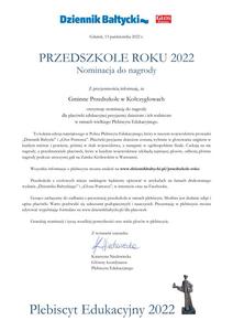 Jest nam miło poinformować, że nasze przedszkole zostało zgłoszone przez Rodziców dzieci do nagrody Przedszkole Roku w akcji Nauczyciel i Przedszkole Roku - największym plebiscycie edukacyjnym w Polsce, który w województwie pomorskim jest prowadzony przez "Dziennik Bałtycki".