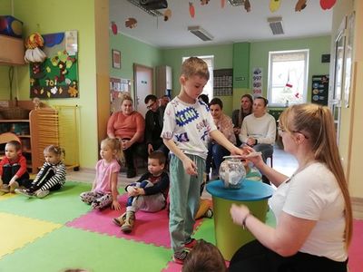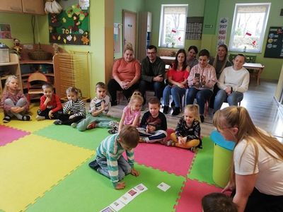 Dnia 9 listopada 2022 w grupie ,,Misiaki” odbyły się zajęcia otwarte dla rodziców. Celem zajęć było kształtowanie poczucia tożsamości narodowej, rozpoznawanie charakterystycznych cech wybranych regionów Polski. Dzieci odpowiadały na pytania dotyczące naszego kraju oraz regionu w którym mieszkają. Zaprezentowały wiersz W. Chotomskiej ,,Twój dom” oraz piosenkę ,,Maluję wielki dom” sł. i muz. K. Gowik. Wspólnie z rodzicami rywalizowali w zabawie ,,Uciekająca piłka”. Dziękujemy Rodzicom za przybycie.