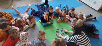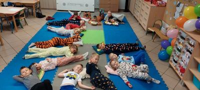 Przedszkolaki bawią się w piżama-party. A dlaczego nie? To wspaniała zabawa ubrać swoją ulubioną piżamkę i bawić się z kolegami. Wszyscy zjawiliśmy się w piżamach z przysłowiowym „jasiem” w ręku. Oczywiście nie po to, ażeby przespać się. Uśmiech nie znikał z twarzy dzieci kiedy uczestniczyły w tańcach piżamowych, wyścigach, zabawie, wróżbach andrzejkowych, pokazie mody piżamowej. BYŁO SUPER!!!