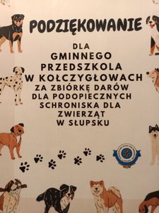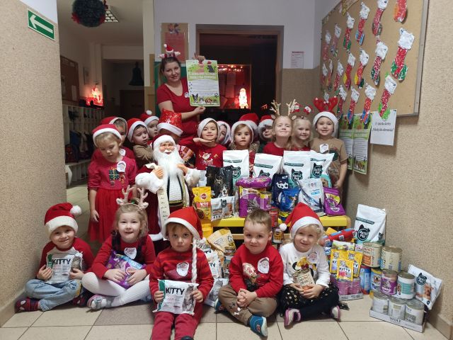 6 XII 2022 r. zakończyliśmy przedszkolną zbiórkę karmy dla zwierząt ze Schroniska w Słupsku. Podczas akcji udało się zebrać 51 kg i 300 g suchej karmy oraz 34 kg mokrej karmy dla psów i kotów. Dziękujemy wszystkim Darczyńcom za ogromne serce, aktywność i pomoc w zbiórce.