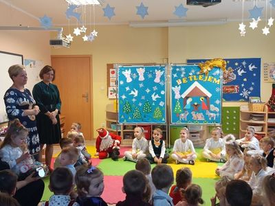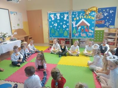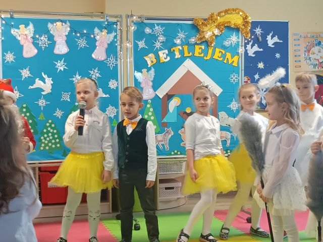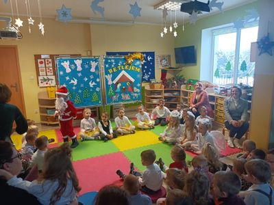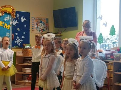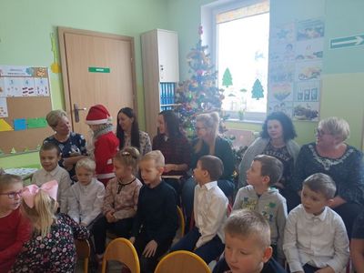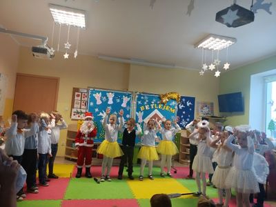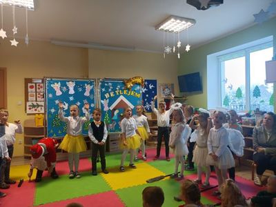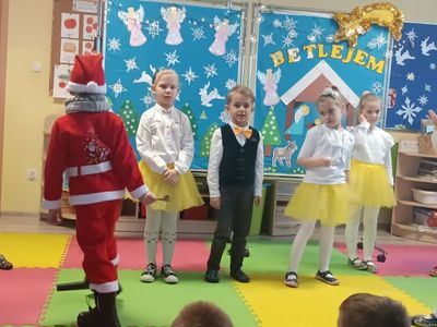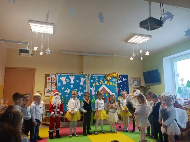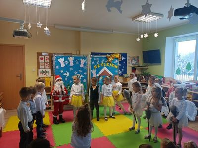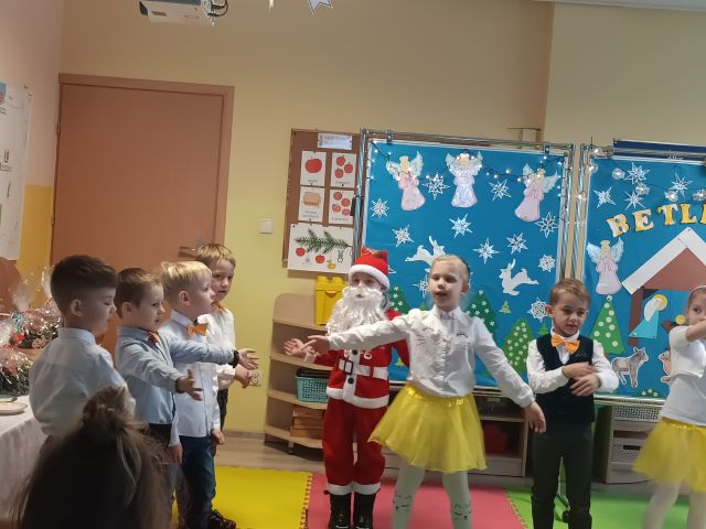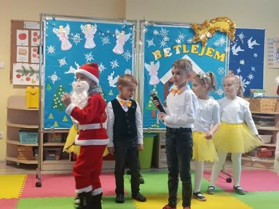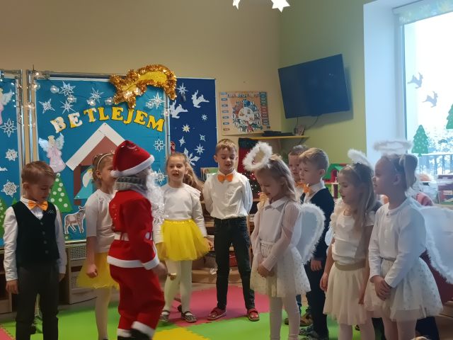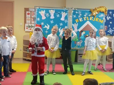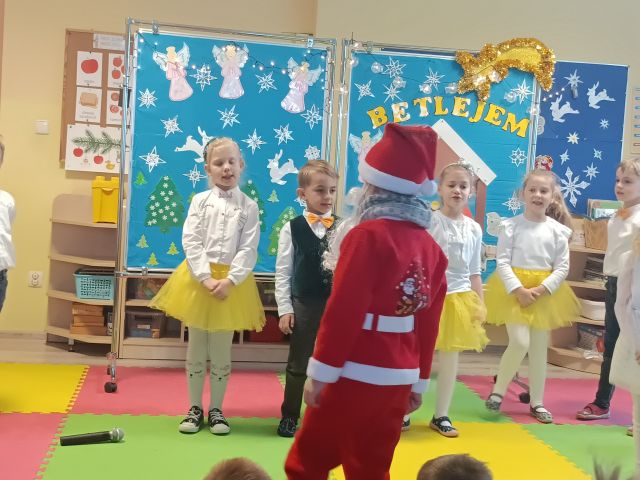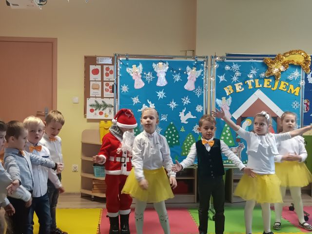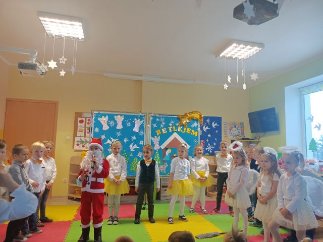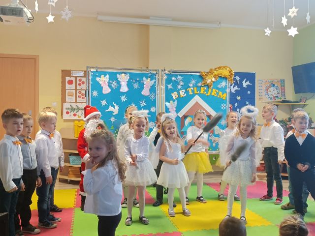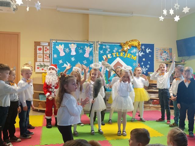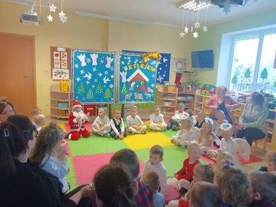 Magia świąt zagościła również w naszym przedszkolu. Dzieci z grupy „Misiaki” przygotowały część artystyczną pod tytułem „Komu potrzebne są święta Bożego Narodzenia?” W spotkaniu wzięły udział wszystkie grupy przedszkolne oraz pracownicy przedszkola. Było wspólne kolędowanie, świąteczne życzenia, nie zabrakło również drobnych upominków. Dziękujemy wszystkim i życzymy radosnych i pogodnych świąt Bożego Narodzenia.