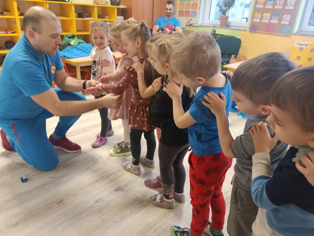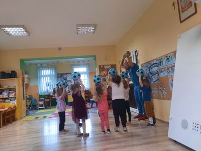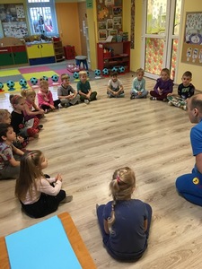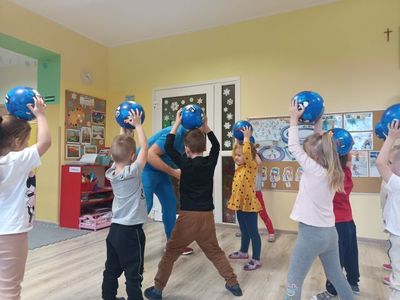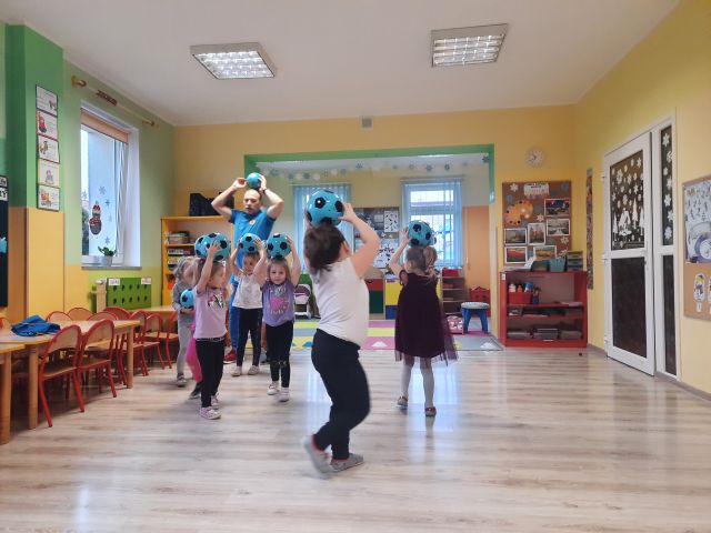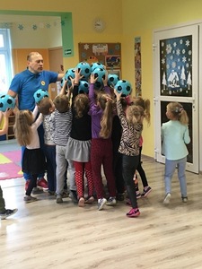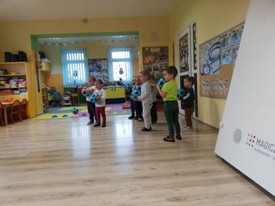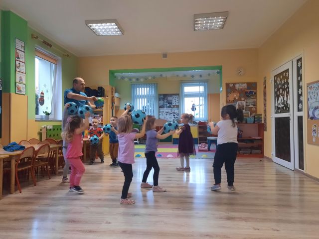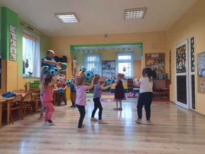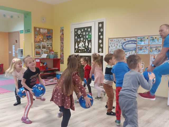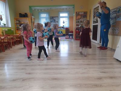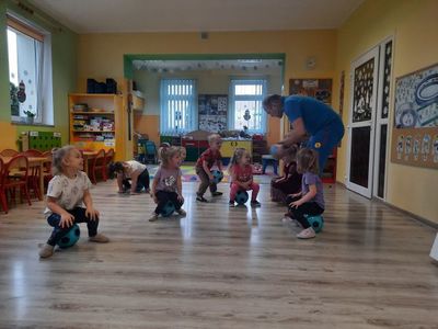 Dziś nasze przedszkolaki uczestniczyły w zajęciach ruchowych Akademii "Drużyna Kangura". Dzieci wzięły udział w zabawach ruchowych z wykorzystaniem piłek. Program zajęć "Drużyny Kangura" jest formą zachęcenia dzieci do podejmowania aktywności fizycznej oraz kształtowania u przedszkolaków zainteresowania ruchem i kulturą fizyczną.