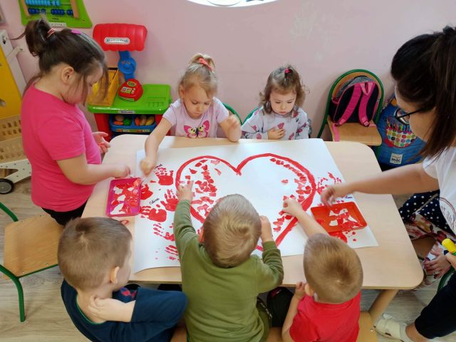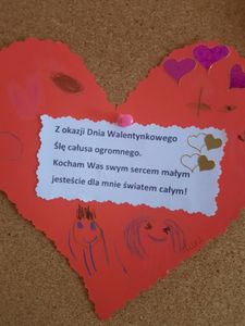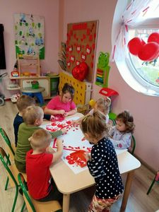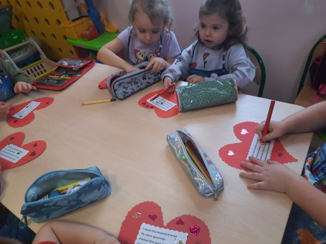 14 lutego w naszym przedszkolu był prawdziwym, czerwonym dniem miłości i przyjaźni. Dzieci wzięły udział w zabawach związanych z walentynkami m.in.: szukały drugiej połówki serca, przeliczały serduszka, rozwiązywały zagadki dotyczące bohaterów bajek, malowały serca, wykonały liściki do walentynkowej poczty oraz bawiły się w ulubione zabawy zespołowe. Nie zabrakło oczywiście sercowych kolorowanek, spontanicznych emocji oraz pozytywnych uczuć.