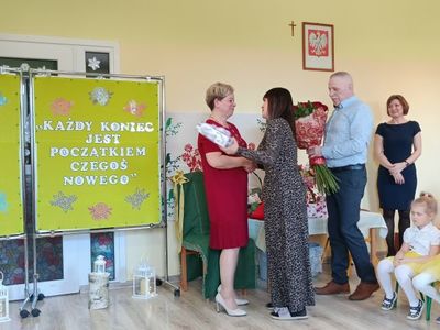 Składamy Pani serdeczne podziękowania za wspólną pracę, wyrozumiałość i wsparcie. Praca z Panią była przyjemnością i stanowić będzie już zawsze ważny rozdział w historii naszego przedszkola. Dziękujemy za każde ciepłe słowo, życiową mądrość i pomocną dłoń.