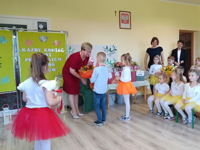 Dnia 22 lutego 2023 roku odbyło się pożegnanie odchodzącej na emeryturę Pani Doroty, która od 35 lat była Nauczycielką, a od niemal roku Dyrektorem w naszym przedszkolu. Przedszkolaki zaprezentowały piękny program artystyczny, w którym nie brakło dużej dawki zarówno wzruszeń, jak i humoru.