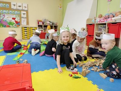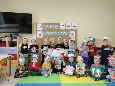 W dniu 24 lutego grupy „Żabki” i „Krasnale” obchodziły w przedszkolu Dzień Dinozaura. Dzieci wzięły udział w zajęciach, które wprowadziły je w prehistoryczny świat i przybliżyły im życie tych wyjątkowych gadów. Krasnale dowiedziały się m.in. jak wyglądały, czym się żywiły oraz w jaki sposób prawdopodobnie wyginęły dinozaury. Podczas zajęć dzieci chętnie porównywały wygląd dinozaurów, określały ich wielkość, z łatwością rozpoznawały nazwy prezentowanych dinozaurów, klasyfikowały je według określonej cechy. W zorganizowanych kącikach przyrody można było podziwiać diplodoki, tyranozaury, triceratopsy, pterodaktyle itp. Nie zabrakło również ciekawych zabawach ruchowych oraz plastycznych związanych z tematyką zajęć.