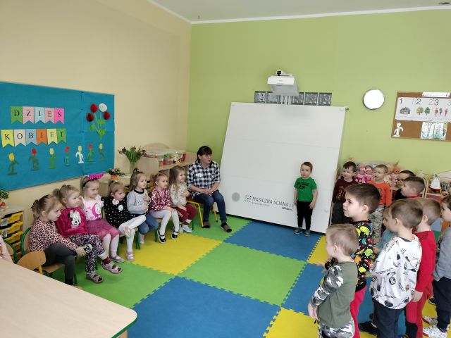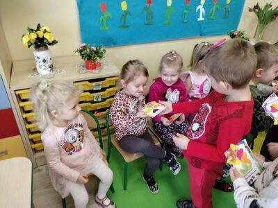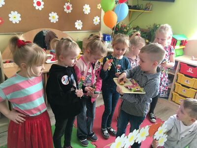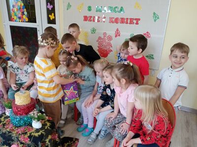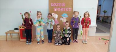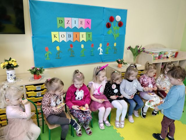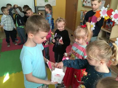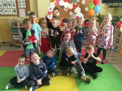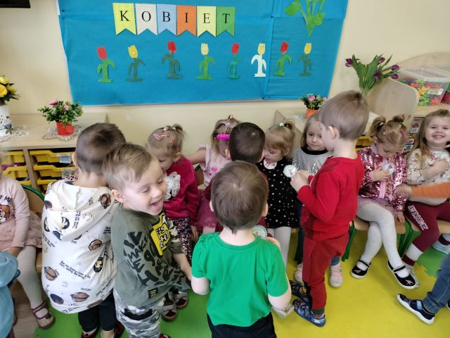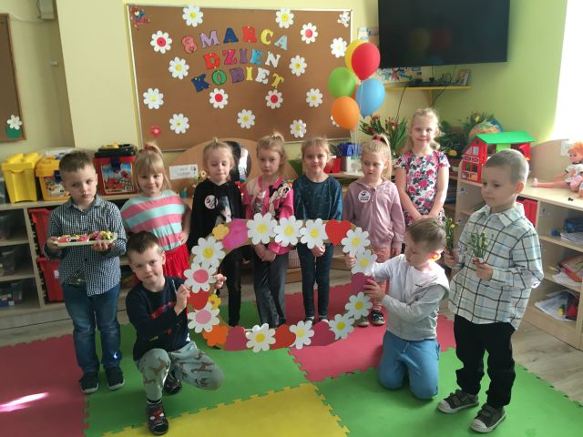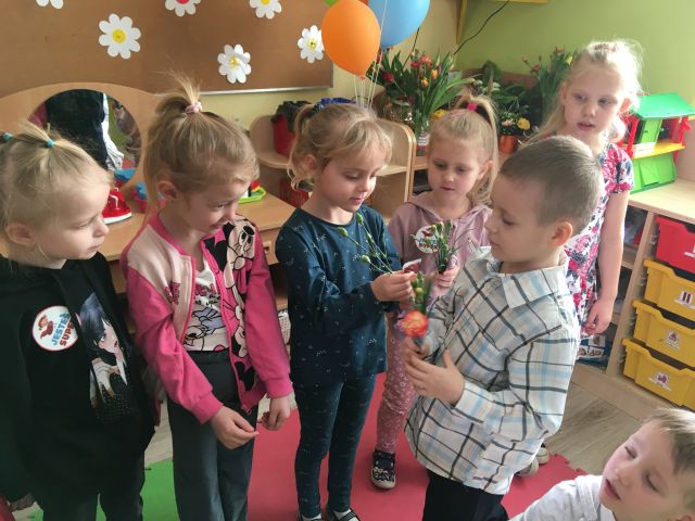 8 marca to wyjątkow dzień w roku. Dziś swoje święto obchodzą wszystkie kobiety. W tym szczególnym dniu chłopcy w każdej grupie złożyli życzenia dziewczynkom i swoim paniom. Nie obyło się bez cukierków, drobnych upominków i kwiatów. Z dziewczęcych twarzyczek uśmiech nie schodził przez cały dzień, a chłopcy zachowywali sie jak prawdziwi gentelmani, byli przemili, uczynni i sympatyczni.