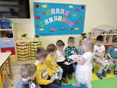 Z okazji Dnia Mężczyzn od rana w każdej sali szepty, niespodzianki i uśmiechy. Dziewczynki samodzielnie wykonały prezenty dla swoich kolegów i wręczyły je chłopcom wraz z życzeniami szczęścia, zdrowia i przyjaźni. Aby uatrakcyjnić to szczególne święto chłopcy musieli się zmierzyć z różnymi trudnymi i śmiesznymi wyzwaniami. Rozwiązywali zagadki, przechodzili tor przeszkód, odpowiadali napytania, które chwilami powodowały głośne wybuchy śmiechu.