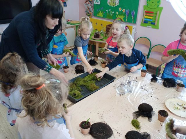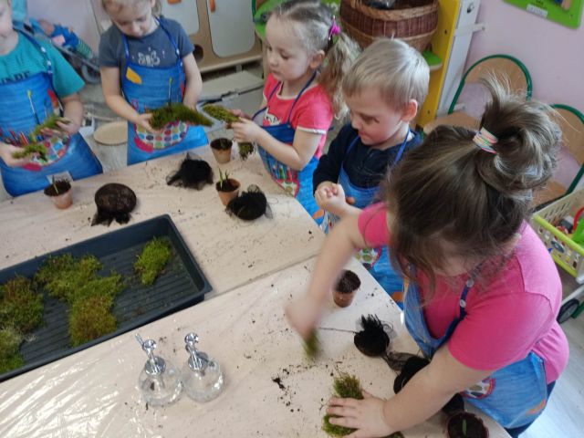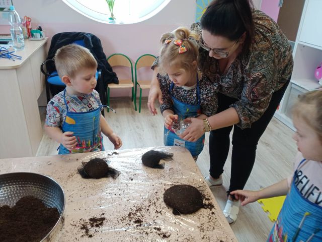 17 marca w grupie Żabek odbyły się warsztaty wiosenne. Odwiedziła nas Pani Basia, która na codzień prowadzi szkółkę roślin. Na początek Pani Basia opowiedziała o ziarnach, które zasiejemy i o cebulkach, które posadzimy. Nstępnie wszyscy z chęcią przystąpili do pracy. Na koniec Pani Basia powiedziała jak należy dbać o nasze mini ogródki.