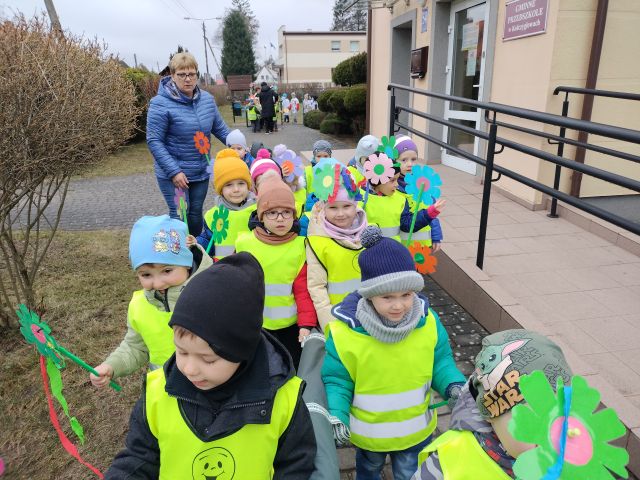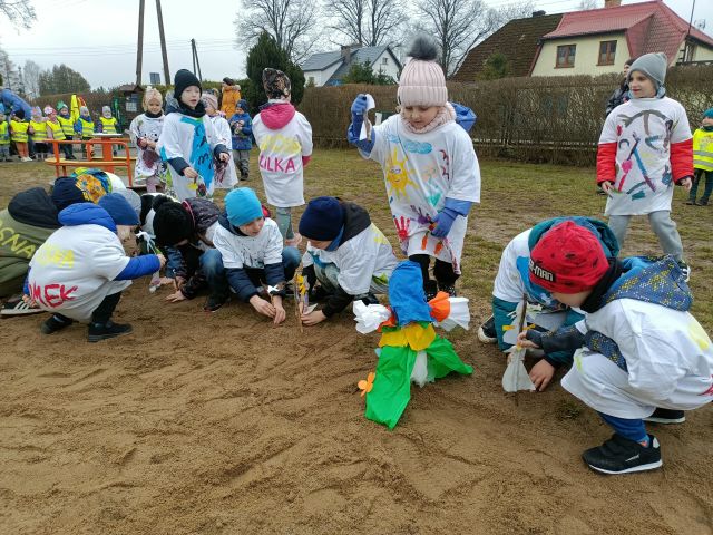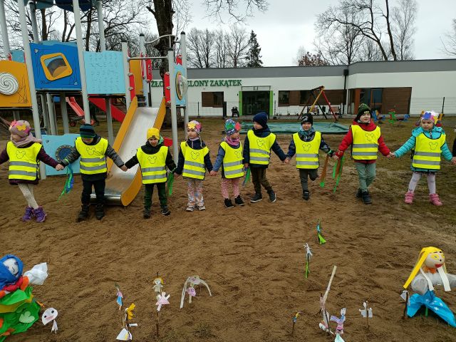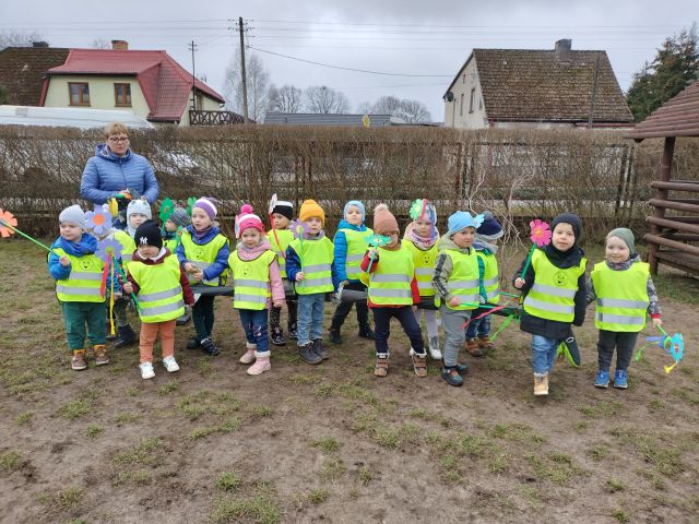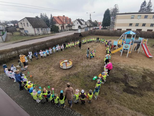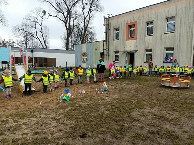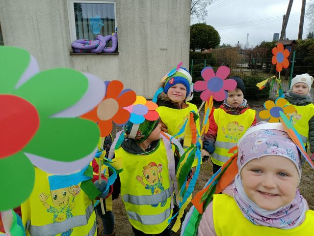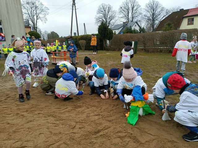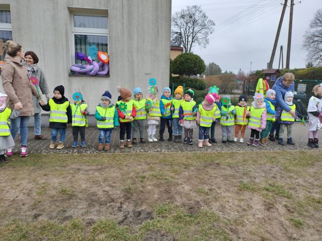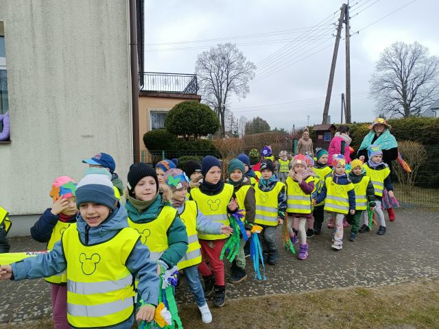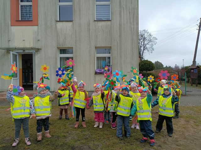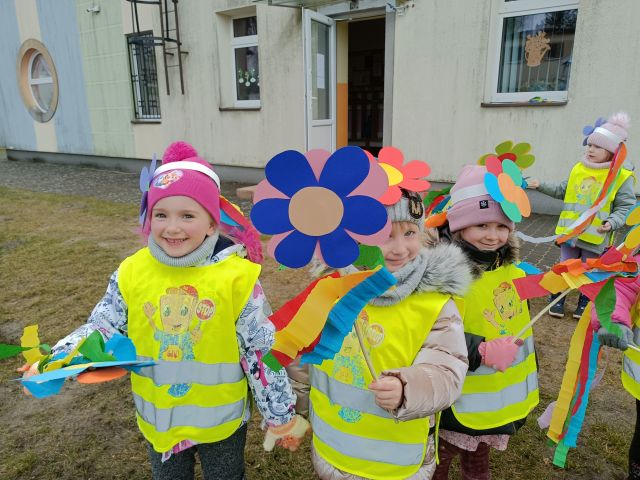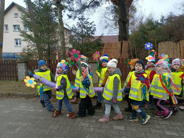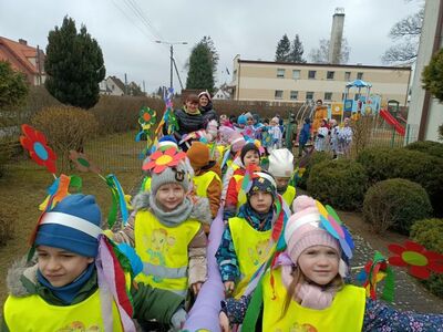 21 marca obchodzimy pierwszy dzień kalendarzowej wiosny. Pomimo pochmurnej aury za oknem w naszym przedszkolu świeciło słońce. Dzieci od rana nie mogły doczekać sie spotkania z Panią Wiosną. Wszystkie grupy spotkały się na placu zabaw, aby pożegnać zimę. Następnie przedszkolaki wybrały się na spacer w okolicy przedszkola w celu poszukiwania wiosny. Mamy nadzieję, że zima została pożegnana na dobre, a przed nami same słoneczne, wiosenne dni.