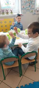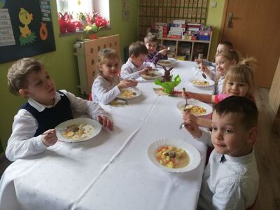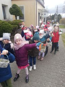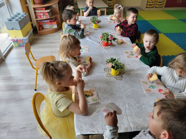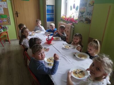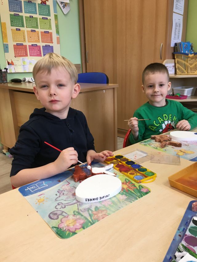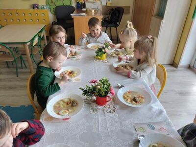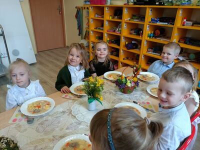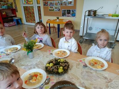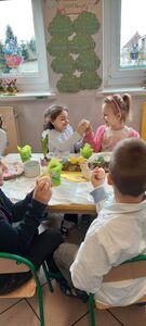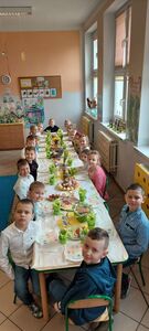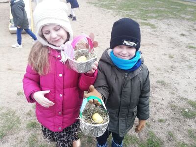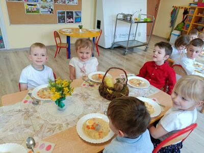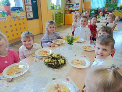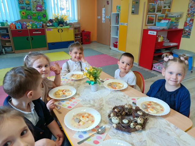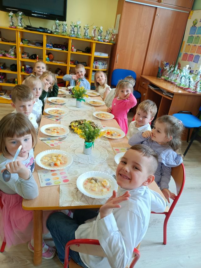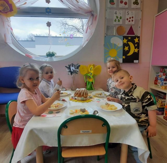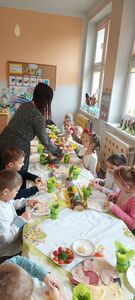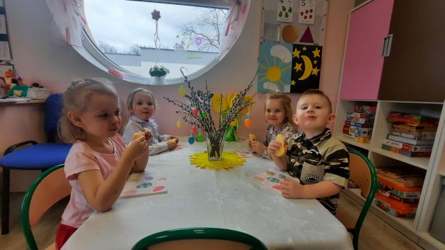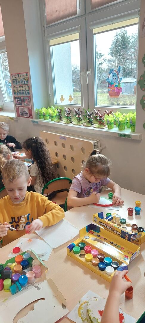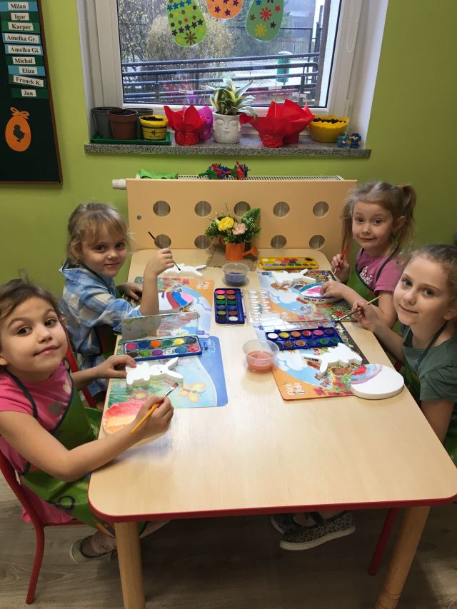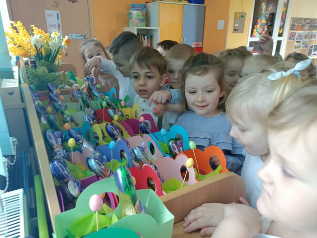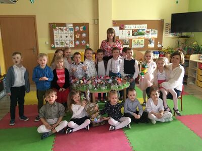 W naszym przedszkolu przygotowania do wielkanocnych świąt uznajemy za udane. Dzieci zasiały i zbierają już plony rzeżuchy, rośnie nam świąteczny owies, a sale i szatnie zostały ustrojone jajeczkami i innymi symbolami wielkanocnymi. Samodzielnie wykonane koszyczki dla zajączka czekają, a dziś dodatkowo ważne wydarzenie, czyli uroczysty obiad w przedszkolu i wspaniałe wielkanocne śniadanie u naszych Jeżyków. Ponadto w każdej grupie od kilku dni trwały warsztaty wielkanocnego ozdabiania styropianowych figurek - przedszkolaki wykonały piękne prace. Wesołego Alleluja!