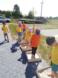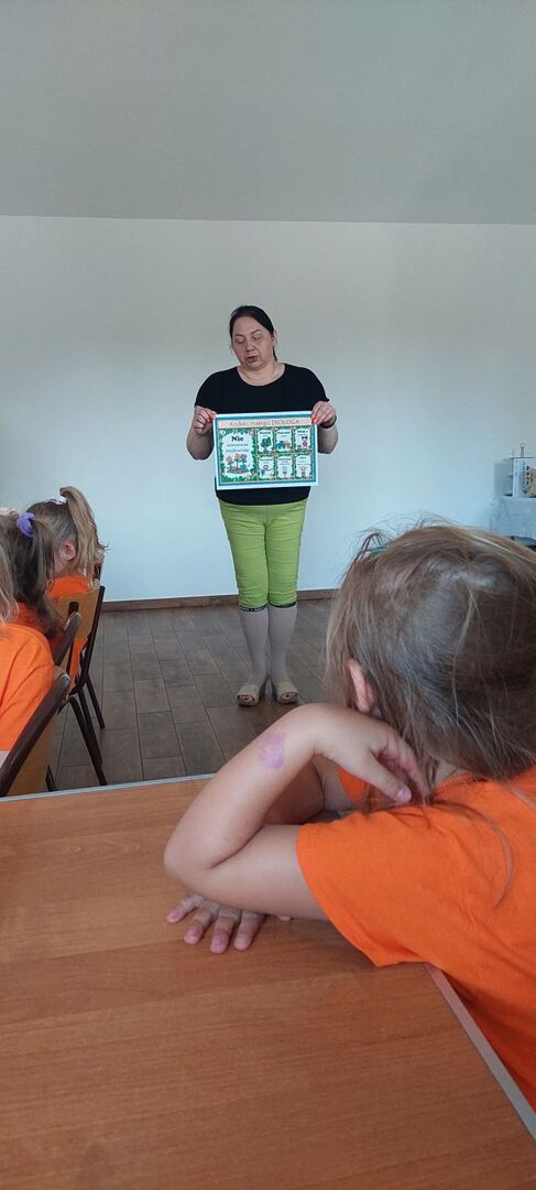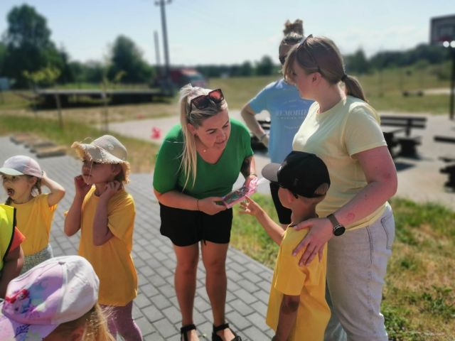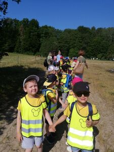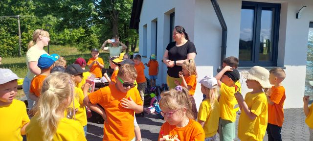 Dziś nasze dwie najstarsze grupy, czyli "Misiaki" i "Jeżyki" wybrały się na pieszą wycieczkę do Barnowa. Celem wyprawy była wizyta w świetlicy w Barnowie, przy której działa stowarzyszenie "Barnowo na Kołach". Dzieci wzięły udział w warsztatach dotyczących żywności ekologicznej. Podczas spotkania z Panią Karoliną, która jest przewodniczącą Polskiego Stowarzyszenia Producentów Ekologicznych BioPomorze nasze przedszkolaki poznały symbol certyfikowanej żywności "Euro-liść", omówiły kodeks małego ekologa oraz degustowały pyszne wegańskie gofry. Po ciekawych zajęciach dzieci aktywnie spędziły czas na świeżym powietrzu grając w piłkę, przeciągając linę oraz korzystając z przygotowanej ścieżki sensorycznej. Dziękujemy Paniom ze Stowarzyszenia za zaproszenie, już nie możemy doczekać się kolejnego spotkania.