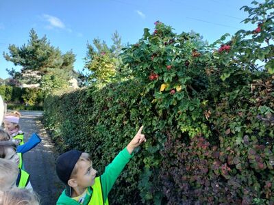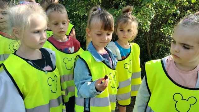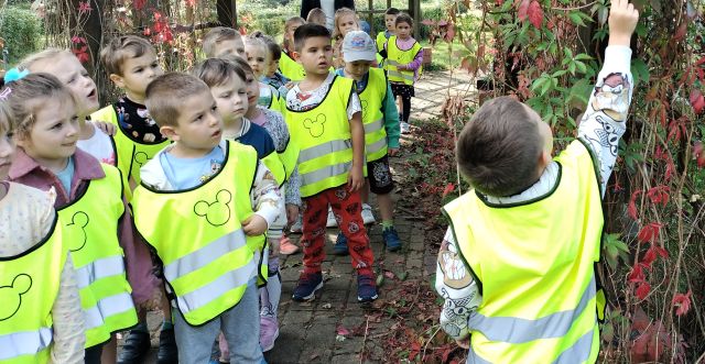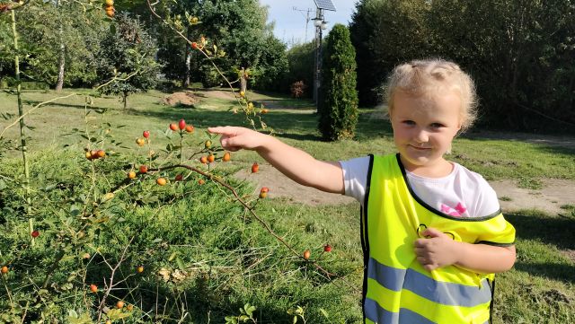 Misiaki od kilku dni szukają oznak i atrybutów jesieni. Dzieci wybrały się do ogrodu botanicznego nieopodal przedszkola i do Parku Krajobrazowego Dolina Słupi. Odkryte przez nas oznaki: jesienne kolorowe liście, owady i zwierzęta gromadzące zapasy, odlatujące ptaki, dojrzewające owoce, spadające kasztany i żołędzie oraz piękna czerwona jarzębina potwierdziły nadejście tej pięknej pory roku.