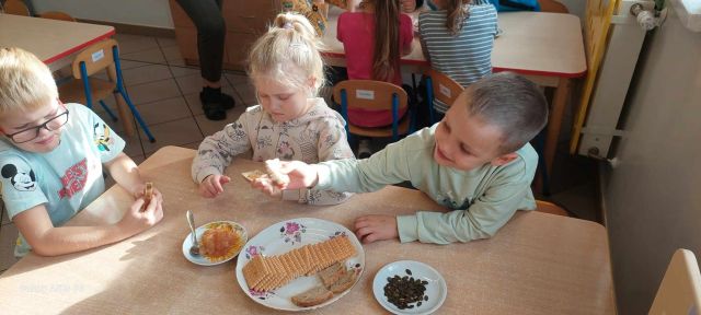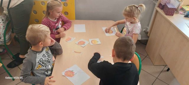 Dzieci podczas zajęć poznały różne gatunki dyni, dowiedziały się również, jakie potrawy można wykonać z użyciem "pomarańczowego warzywa". Jeżyki przeliczały zbiory dyniowe, a także układały puzzle. Było dużo zabaw i gier z użyciem dyni, degustacja chleba i dżemu dyniowego. Na koniec każdy otrzymał pamiątkowy dyplom.