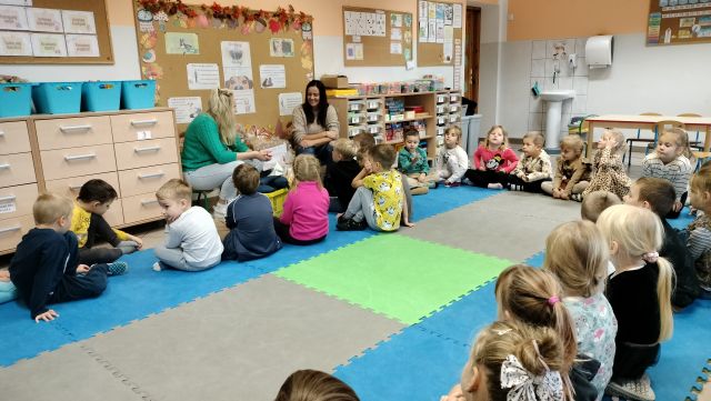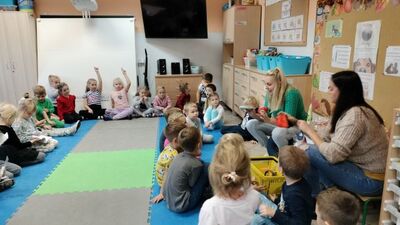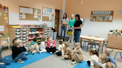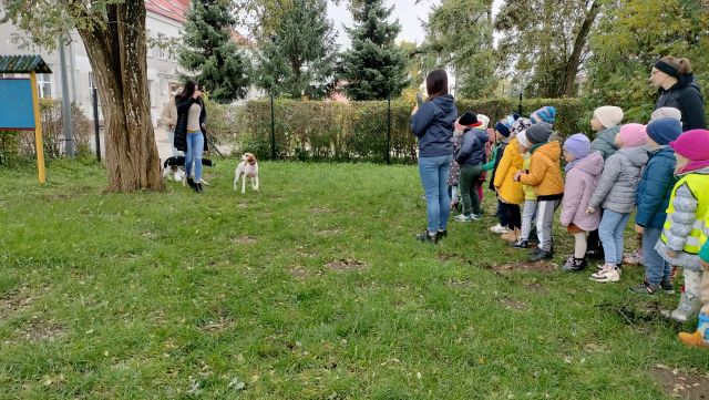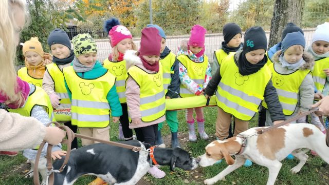 Nasze przedszkole odwiedziły wolontariuszki ze schroniska dla bezdomnych psów "Azyl" Pani Angelika i Pani Dorota wraz z psiakami pointerami Nurią i Narą. Wolontariuszki przeprowadziły zajęcia, na których dzieci zapoznały się ze sposobami opiekowania się zwierzętami, pielęgnacją i ich prawidłowym żywieniem. "Jeżyki" i "Misiaki" dowiedziały się, na czym polega wolontariat w schronisku. Przedszkolaki przygotowały wraz z rodzicami smakowitą karmę i zdrowe przekąski na prezenty dla zwierząt ze schroniska. Na koniec spotkania wszystkie dzieci otrzymały książeczki - kolorowanki z różnymi rasami psów. Dziękujemy za spotkanie!