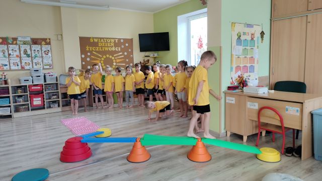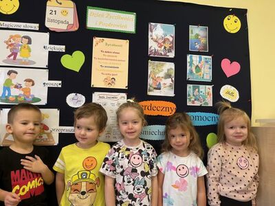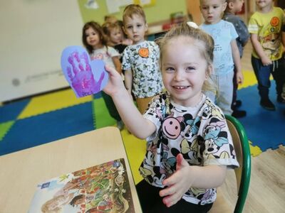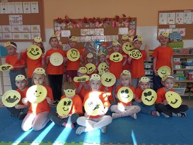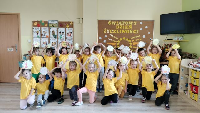 "Małe radości i drobne gesty życzliwości są najpiękniejszymi iskierkami naszej codzienności". 21 listopada obchodziliśmy Dzień Życzliwości i Pozdrowień. Dzieci wyjaśniały, jak należy okazywać sobie nawzajem dobroć, koleżeństwo i uprzejmość, a także kulturalnie odnosić się do rówieśników i dorosłych. Wszyscy obdarowywaliśmy się uśmiechami, niespodziankami, uczestniczyliśmy w integracyjnych zabawach koleżeńskich oraz przygotowaliśmy piękne prace plastyczne.