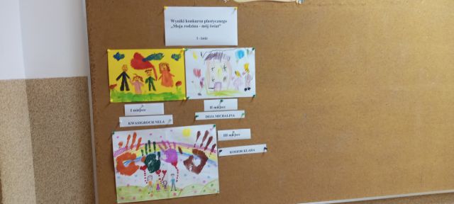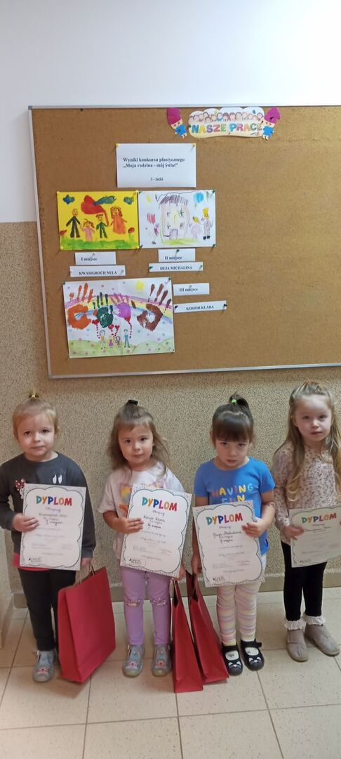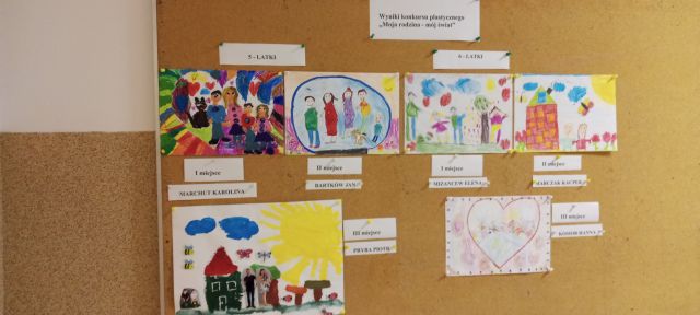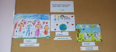 23 listopada 2023 r. został rozstrzygnięty konkurs plastyczny "Moja rodzina - mój świat". Celem konkursu było rozwijanie sprawności manualnej, kreatywności oraz pomysłowości u dzieci, a także wzmocnienie więzi rodzinnych.
