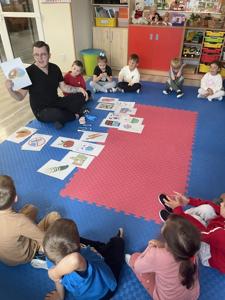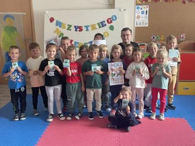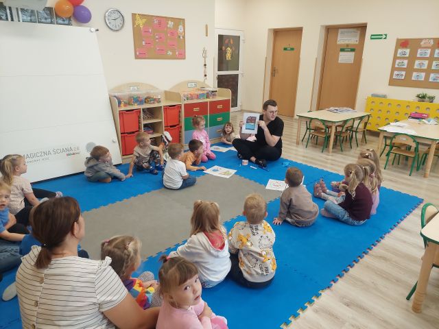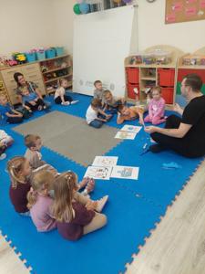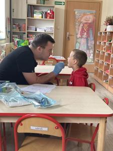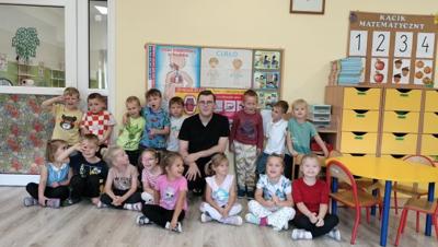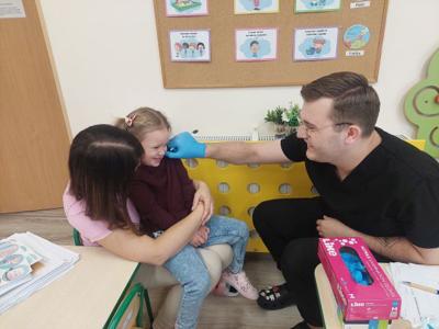 W środę nasze przedszkolaki odwiedził higienista stomatologiczny - Pan Maks, który przeprowadził warsztaty na temat dbania o zęby. Dzieci uważnie słuchały i świetnie odpowiadały na pytania dotyczące zdrowej i nieodpowiedniej dla naszych zębów żywności. Pan Maks zbadał również stan zdowia zębów i jamy ustnej u dzieci.