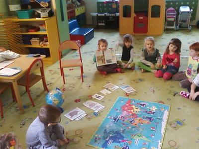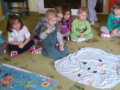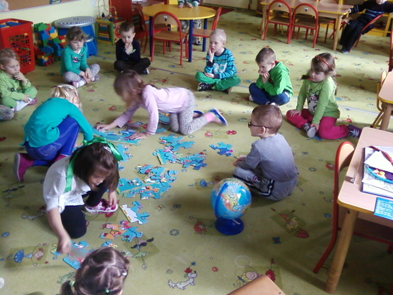 W piątek (21 marca 2014r.) dzieci z grupy BIEDRONKI wzięły udział w drugim zajęciu z cyklu " POZNAJ ŚWIAT Z MISIEM HARIBO" . Tym razem odwiedziły największą wyspę na świecie- GRENLANDIĘ. Poznały mieszkańców wyspy, kulturę i zwyczaje panujące na dalekiej półnycy. Wysłuchały bajki pt. " NUKA I JEGO PRZYJACIEL MIŚ".Bawiły się w Inuitów łowiących ryby. Na zakończenie zajęcia dzieci wykonały pracę plastyczną i przypomniały sobie, jak smakują żelki HARIBO. Do zobaczenia za tydzień.