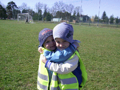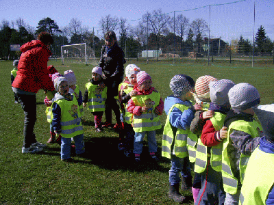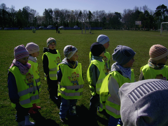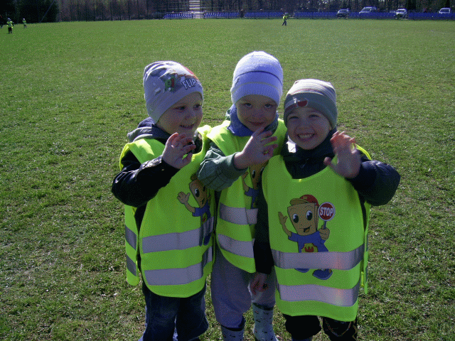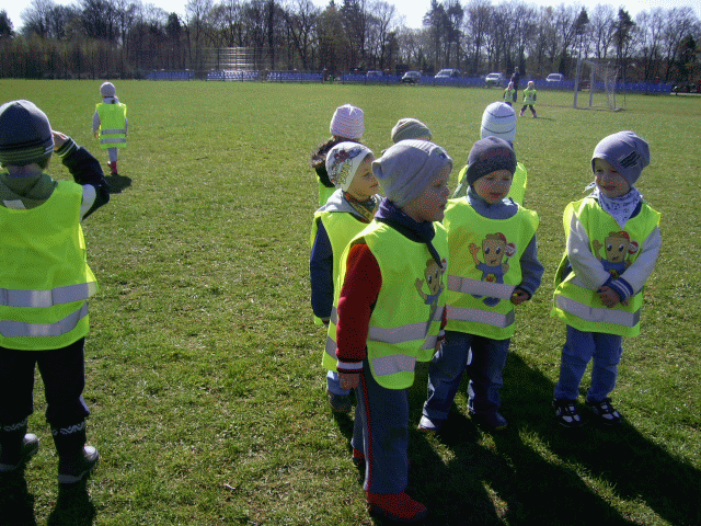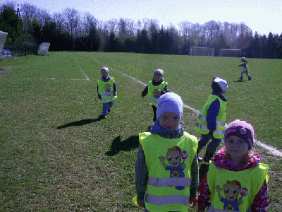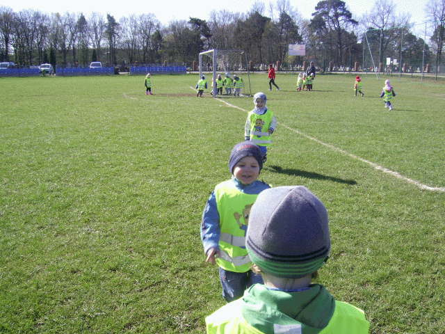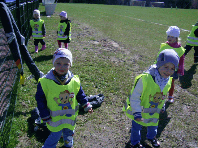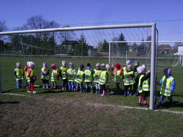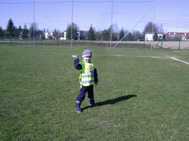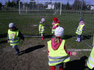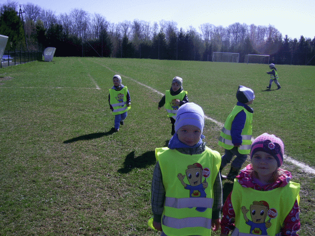 Nasi najmłodsi uwielbiają ruch na świeżym powietrzu i spacery. Dziś Krasnale wybrały się ze swoimi Paniami na boisko położone niedaleko Zespołu Szkół w Kołczygłowach. Dzieci nie potrzebowały piłki, aby świetnie się bawić. Biegając pokonały kilka kilometrów, a mimo to wracając do przedszkola miały siłę, żeby śpiewać.
